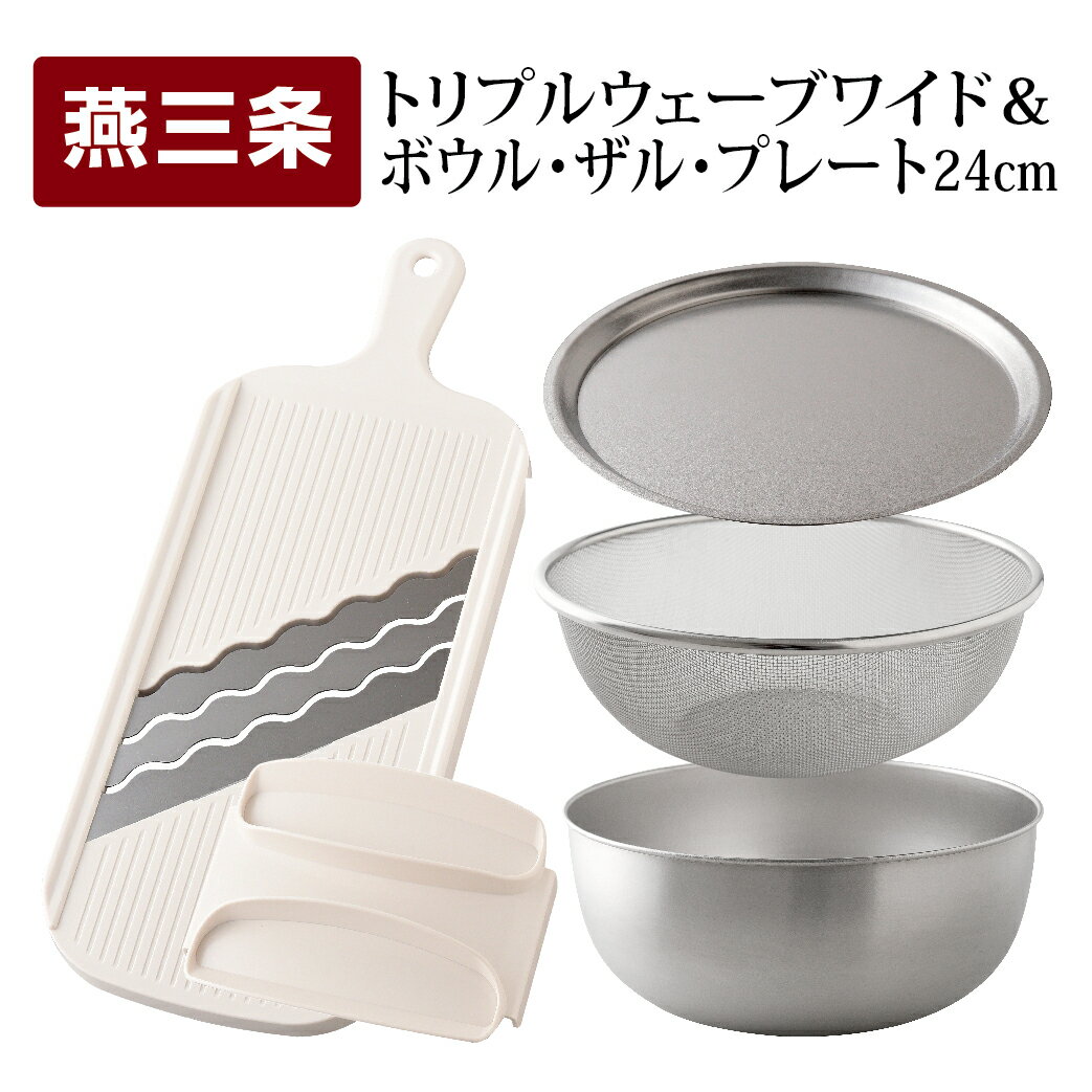 【ふるさと納税】トリプルウェーブワイド 24cmボウルザルプレートセット 燕三条製 アーネスト キッチンツール4点セット 新銀河 ボウル ザル プレート スライサー キッチン用品 調理器具 調理用品 新生活 一人暮らし 仕送り【016S037】
