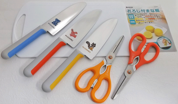 正広 子供包丁 こども包丁 皮ムキ まな板セット(おろし付)包丁 子供用【ゆうパケット対応】プレゼントに最適 刃先のカバーやサックの付属はありません。