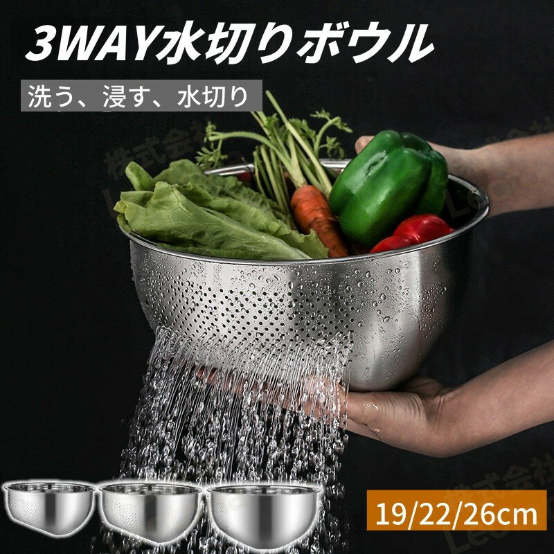 「★レビュー特典」水切りボウル ステンレス ザルボウル 水切りボウル 3way 穴あきボウル パンチングボウル ステンレス 3Way ざる ステンレスボウル 野菜水切り 米とぎ ボウル 果物洗い 排水ボウル 多機能ボウル ステンレスざる