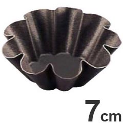 フランスの製菓器具メーカー、GOBEL社のブリオッシュ型です。おしゃれなブラウンの色のフッ素樹脂加工付きで、型抜けも良く、空焼き等の処理も不要で、取り扱いも楽々♪。フッ素樹脂加工されていますが、生地を入れる前に、油脂を塗られることをおすすめします。 φ70は、9ウェーブ(ヒダが9枚)です。 GOBELのブリオッシュは、一口サイズのφ60からパーティーサイズのφ220までの11サイズ!! 材質 鉄にフッ素樹脂加工 サイズ・板厚 外寸 70mm 内寸 70(35)×H27mm 板厚 0.5mm 生産国 フランス 注意事項 金属たわし、みがき粉などは傷がつきやすいので不可。空焼き、直火、レンジ不可。タンニンが含まれる食材を使用すると、タンニンと製品の素材が化学変化を起こし、黒い斑点ができる場合がありますが、人体に影響はありません。使用後は水気を拭き取って保管してください。ご購入の際には、ご使用のオーブンの庫内と型の外寸法をよくお確かめください。この製品は製菓用です。食器洗い乾燥機を使用すると、コーティング等の寿命が著しく低下する場合があります。実際の商品が写真と若干異なる場合があります。また記載サイズ等を予告なしに変更する場合があります。