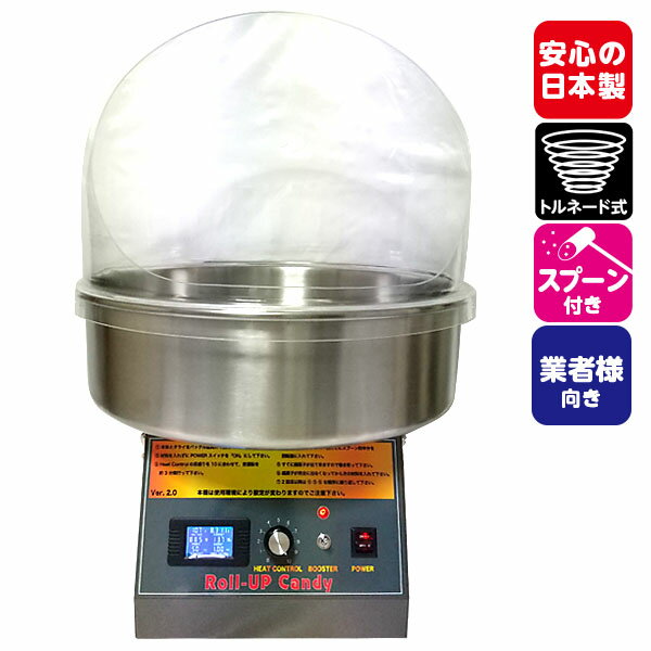 今なら、なんと!送料無料!!(※沖縄・離島・一部地域は送料要)※送料無料対象商品について※送料無料対象商品であっても、送料無料対象外の商品と一緒にご注文した場合は送料が発生致しますのでご注意下さい。また、お支払方法が代引きの場合、代引き手数料は送料とは別に発生致します。 よりなめらかな口どけの わたがしが作れる♪大きいサイズや、 人気の『花わたがし』、『レインボーわたがし』 なども作れる新型わたがし機☆液晶ディスプレイ搭載、トルネード型タイプの電気式綿菓子機です。自治会や町内会などのイベントおよび営業・業務用に最適!!従来の綿菓子用ざらめでカラフルで大きい綿菓子ができ、アイデア次第でいろいろな形に作れます。安心の日本製。沖縄県・離島地域のお客様へこちらの商品は、沖縄県・一部離島地域のお客さまは通常送料と別に、中継料金(実費料金)がかかります。また、発送自体が出来ない地域もございます。ご注文後、楽天市場からの自動配信メール↓店舗からの承諾メール↓中継料金を含めた確認メール上記の流れでお客様へメールが届きます。最終決済金額は「中継料金を含めた確認」にてご確認下さい。⇒詳しくはこちら★特徴★1)グラニュー糖、ザラメ糖双方に対応。操作パネル デジタル表示電流計、電圧計、他2)回転釜 出力アップ用BOOSTERスイッチ装備(BOOSTERスイッチを装備したことにより使用環境に影響されず、綿菓子の生産量が安定 しました。電圧降下を回避いたします。)3)本体にフードを乗せるだけ。持ち運びも容易。4)大きさにもよりますが、大きめの綿菓子で、1本 : 約90秒(目安)ほどで出来上がります。2色3色と多色の綿菓子が製造可能な上、様々な形にも挑戦してみて下さい。(始動時は調理適温に達するまで約3分間空回転させて下さい。)※綿菓子機の受け皿は壊れにくくステンレス製なので、衛生的で高級感があります。5)設備不要。電源に差し込むだけで稼働します。6)従来の機械は横方向に綿あめが出ますが、最新のトルネードタイプは綿あめが竜巻のように上昇して出てきます。そのため話題の「花わたがし」や動物など様々な形状を作成することができます。7)従来機TR-17 型の回転釜の側面の羽根を3枚から6枚に改良し、綿菓子の浮力を 向上し さらに巻き易くなりました。★スペック★能力:サイズによって異なります。サイズ:幅52.0cm×奥行52.0cm×高さ76cm(タライまで39cm) 幅31.0cm×奥行37.7cm×高さ26.4cm(本体ボックスサイズ)重量:約15kg電源:100V 50/60Hz消費電力:1,100Wメーカー:ライオン(日本製)保証期間:1年間付属品:ステンレススプーン、 ACケーブル◆販売単価216140円(237754円税込)◆メーカー希望小売価格オープンプライス◆商品サイズ計測中【関連】わたあめ 綿あめ わたがし 綿菓子 ざらめ ザラメ わたがし機 綿菓子機 業務用 おかし 子供会 自治会 お祭り 問屋 祭 夏祭り 夏まつり おまつり 縁日 露店 屋台 模擬店 夕涼み会 保育園 幼稚園 パーティー イベント 夏休み 子ども会 学童保育 児童館 七夕 PTA 体育大会 体育祭 発表会 文化祭 こどもの日 節句 七夕 夏休み バザー ひなまつり ひな祭り ハロウィン ハロウィンパーティー クリスマス クリスマス会 交流会 お楽しみ会 レク レクリエーション レインボー 花わたがし コットンキャンディ【フェスティバルプラザ】※ご注文の前に必ずお読み下さいこちらの商品は初期不良を含む全てのサポートはメーカーサポートとなりますのであらかじめご了承の上、ご購入下さい。また、こちらの商品は予告無く更新されることがあるため、画像と商品が異なる場合がございます。