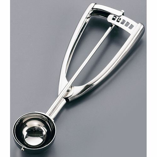 握るだけで丸い形のアイスが出来上がります。アイス以外にもジェラードやシャーベットにも、ポテトサラダの盛り付けにも便利です。18-8ステンレス製でサビに強く、長くお使いいただけます。 <商品仕様> ■サイズ:直径30×全長190mm ■容 量:8cc ■材 質:18-8ステンレス ■日本製 ●他のディッシャーはこちらからどうぞ■18-8 ディッシャー #28 直径3cm 8cc