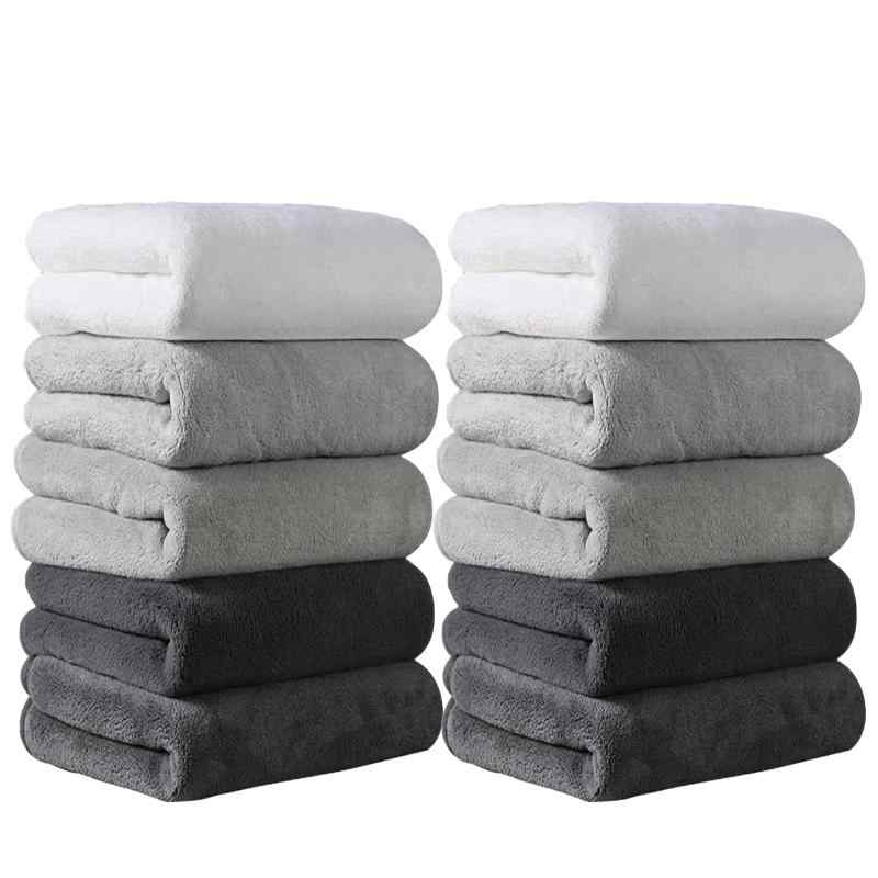 バスタオル [HOSUR] ふわふわ 大判 吸水速乾 ホテル仕様 柔らか肌触り エステ 業務用 サロン お風呂上がり耐久性 バス用品【極細繊維のマイクロファイバー素材】通気性があり、柔らかく快適な素材です。 通常のタオルよりも細番手の高品質糸を使用することで、繊細で柔らかな肌触りを実現しました。 ふわふわの起毛タイプなので、大人だけでなく赤ちゃんのお肌も優しく包み込みます。 特徴:吸水速乾、軽量、毛羽落ち防止、通気性が強く、静電気なし、蛍光なし。【ふわふわ】このバスタオルは髪の毛の1/100のサイズのマイクロファイバー(極細繊維)で作られています。 毛細管現象で水分を素早く吸収・拡散します。 拭かずに触るとツルツルになります。 蛍光染料不使用でソフトな肌触りで優しい仕上がりです。 品質: このバスタオルは色褪せないや毛羽落ちしないことをします。【抜群の吸水性と速乾性】綿素材より優れた吸水性と速乾性。 マイクロファイバー素材の表面には無数の隙間があり、その隙間に大量の水を素早く吸収します。 髪や肌を軽く拭くだけで水分を吸収し、ホコリがつきにくいです。 バスタオルの隙間により、隙間に溜まった水分を空気が素早く拡散させるので、乾燥が早く、無菌で衛生的な状態を保つことができます。 梅雨や湿気の多い季節でも清潔を保ちます。 乾きにくい洗濯物にも快適にお使いいただけます。 室内干しも可能です。【毛羽が出ない、色褪せない】マイクロファイバーで丁寧に織られた高品質で、生地の表面から毛が落ちにくいです。 さまざまなバスタオルセットと合わせて、使用やギフトのさまざまなニーズを満たすことができます。糸の靭性が強くて、使用寿命は通常のタオルの4倍以上です。色あせしにくく、毛羽ができにくく、 何度洗濯しても型崩れしません。 出張、旅行、入浴、家族など様々な場合で活躍、ご家族皆さんが満足できます。【ギフトに最適】自宅だけでなく、温泉、旅行、プールなども使えます。 お風呂上がり、ジム、エステ、プールなど様々なシーンに大活躍です。 自分が使うだけではなく、同僚、上司、お客様へのお礼、敬老の日、友達へのお祝い、結婚祝い、親孝行、誕生日/お中元/お歳暮/父の日/母の日/敬老の日などのお祝い・贈り物(ギフト)にも適応です。