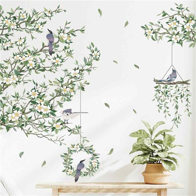 SMAOSTORE(また) ウォールステッカー グリーン つる おしゃれ 天井 ステッカー 背景の壁 植物 観葉植物 開花植物 防水 はがせる ウォールシール 北欧 壁紙シール