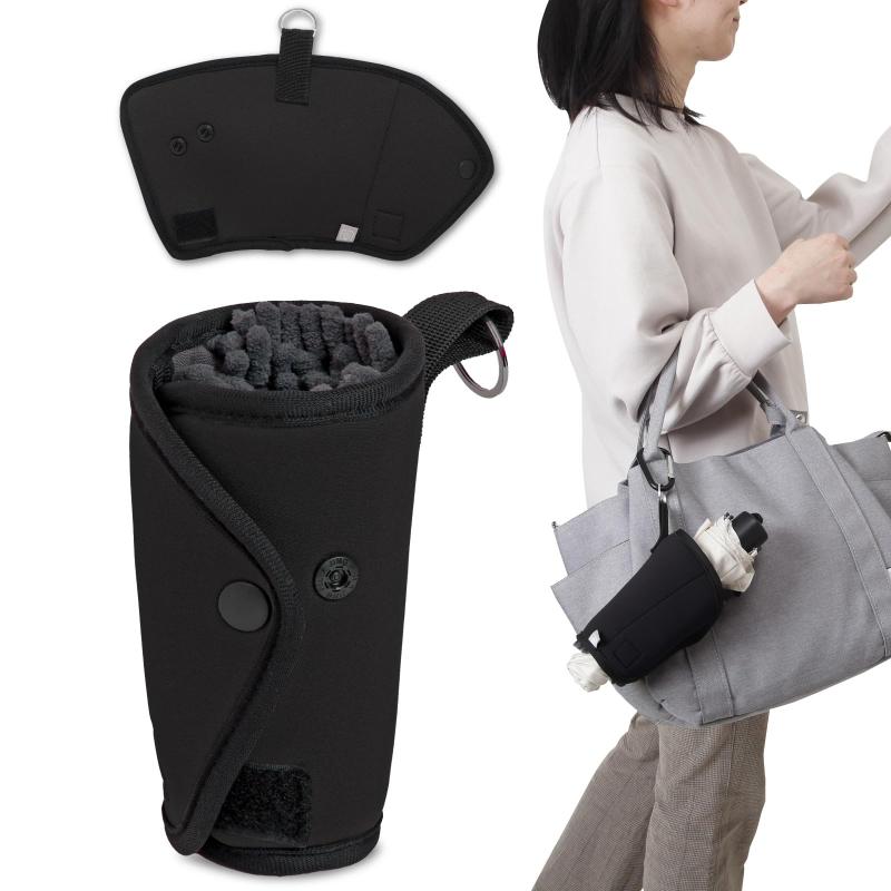 【HatsumeiLabox】Kassup(ブラック)&ノーマルカラビナ|カサップ 入れるだけで雫を拭きとる傘ホルダー ハンズフリー 長傘 折り畳み傘 傘カバー 傘ホルダー 傘ケース 車 ス