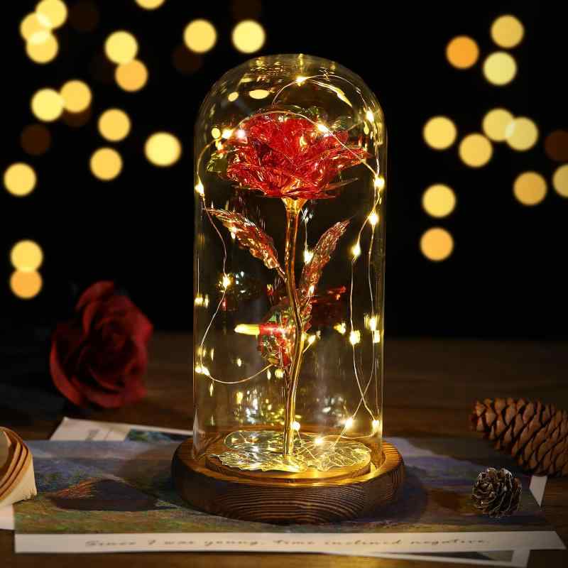 Lewondr 造花ドーム 枯れない花ガラスドーム 母の日のプレゼント メッキローズ バレンタイン 飾り 長持ち LEDライト付き 部屋飾り インテリア 引越しバラ/母の日/記念日/誕生日/お祝い/お見舞