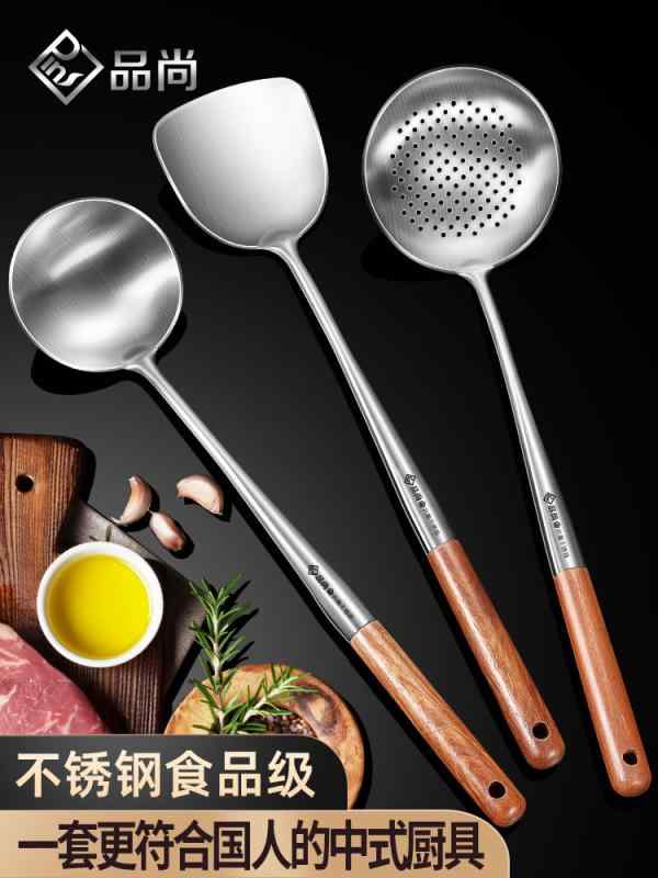 304ステンレス フライパン スプーン シェフ 調理 鍋 シャベル 木 ハンドル 家庭 長柄 スープスプーン キッチン 焼き飯 から レードル