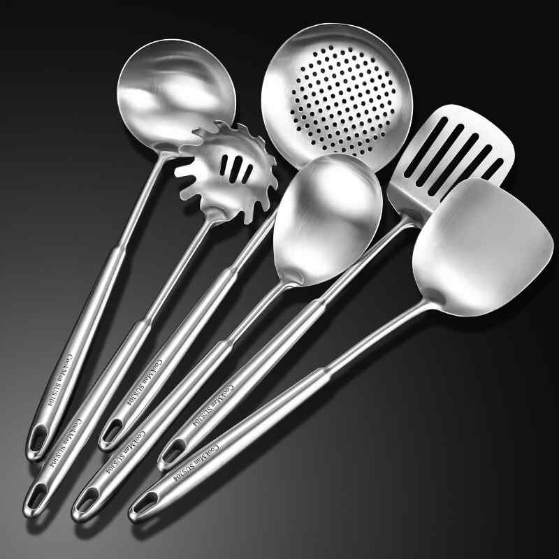 ・カテゴリ: スプーン・ターナーセット・主な素材: ステンレス・ハンドル素材: 304ステンレス・スタイル: モダンシンプル・展開: フライ返し、穴あきフライ返し、ターナー、飯ベラ、お玉、穴あきお玉、6点セット+収納袋