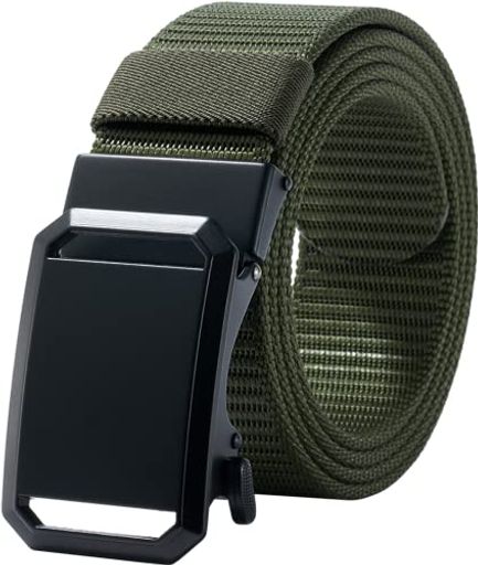 [LionVII]ナイロンベルトメンズ-オートロック式作業用ベルト登山スポーツゴルフ-アウトドアベルト作業着男女兼用穴なし無段階調節(ミリタリー)