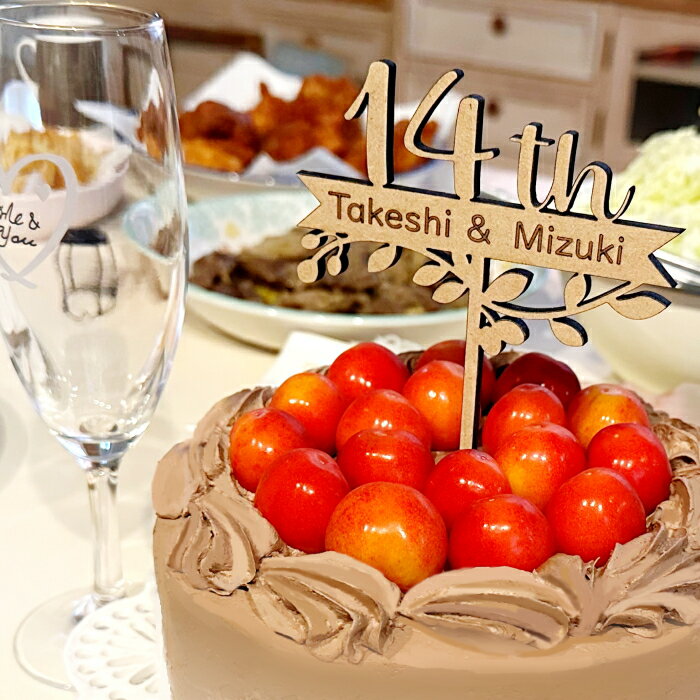 結婚記念日 アニバーサリー・ケーキトッパー ウェディング 木製 ケーキ キッチン雑貨 ナチュラル かわいい 名入れ オーダーメイド ハンドメイド Wedding anniversary お祝い 飾り インテリア 記念 思い出