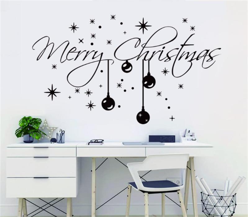 NAIZANG ウォールステッカー クリスマス 飾り 壁 シール おしゃれ はがせる 大きい ウォールシール 壁 黒 単調 雪の結晶 Merry Christmas ウォールすてっかー 装飾 壁にはる bedroom wall sticker decor