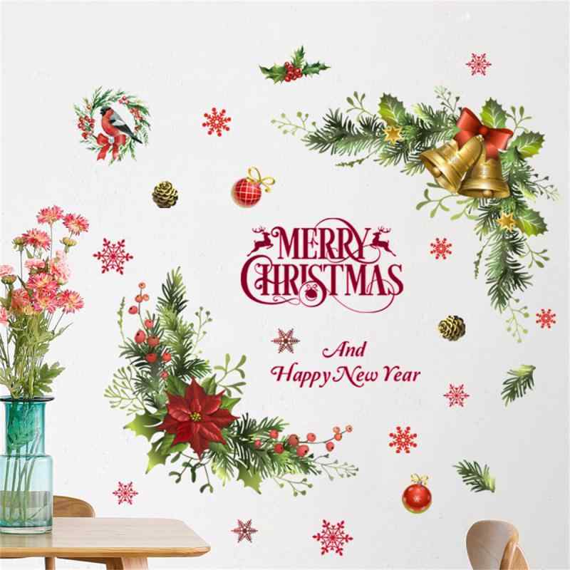 NAIZANG クリスマス ウォールステッカー おしゃれ 緑のクリスマスリース 植物 英語 鈴 ウォールシール はがせる 子供部屋 寝室 女の子 男の子 こども ドア 壁 飾り ウォールすてっかー 装飾 壁