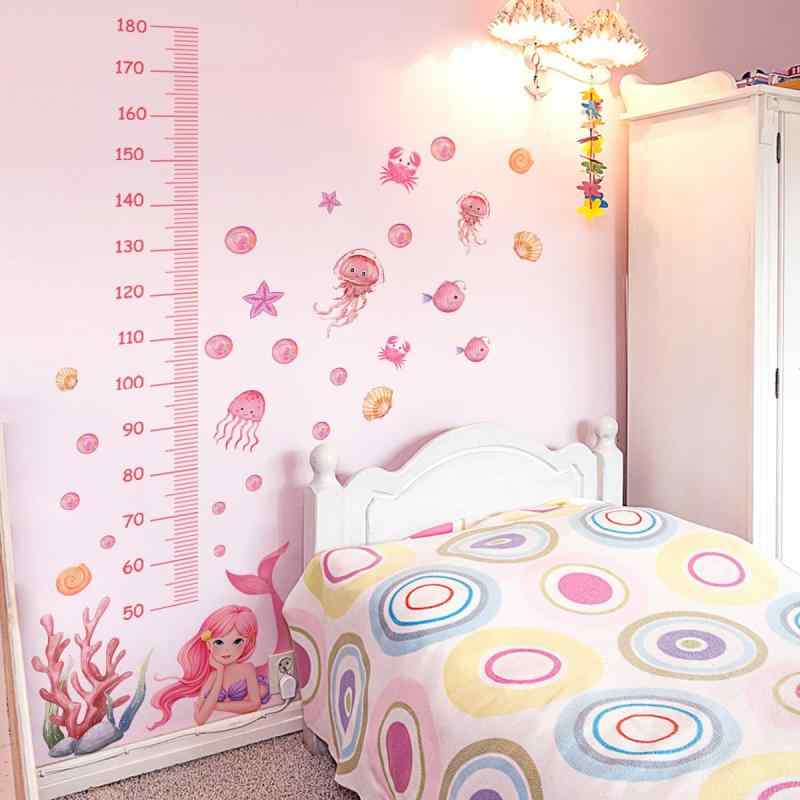 NAIZANG ウォールステッカー おしゃれ はがせる ピンク 海底 マーメイド 身長測定ウォールシール 壁にはるシール 飾り wall paper decorations for living room bedroom 壁紙