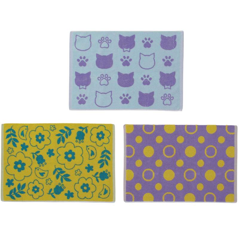 トップ産業(Top-sangyo) 洗い替え便利な タオルバスマット 3柄組 ドット ねこ フラワー 42×62cm 綿100%使用 お風呂 洗える 小さめ ミニ かわいい 足ふき 使い分け 浴室 収納 ハンガー 掛け 干し 92019