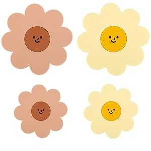 JCSMARTEC 4-Pcs Silicone Drink Coasters,Vintage Flower Coffee Mug Coasters for Office, Home, Cup Coasters Protect Table from Water Marks and Damage (4inch+6inch) (Sunflower)