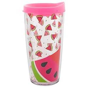 スイカ バースト 断熱 16 オンス トラベル タンブラー マグ ネオン ピンクの蓋付き FREEHEART Watermelon Burst Insulated 16 Oz Travel Tumbler Mug with Neon Pink Lid
