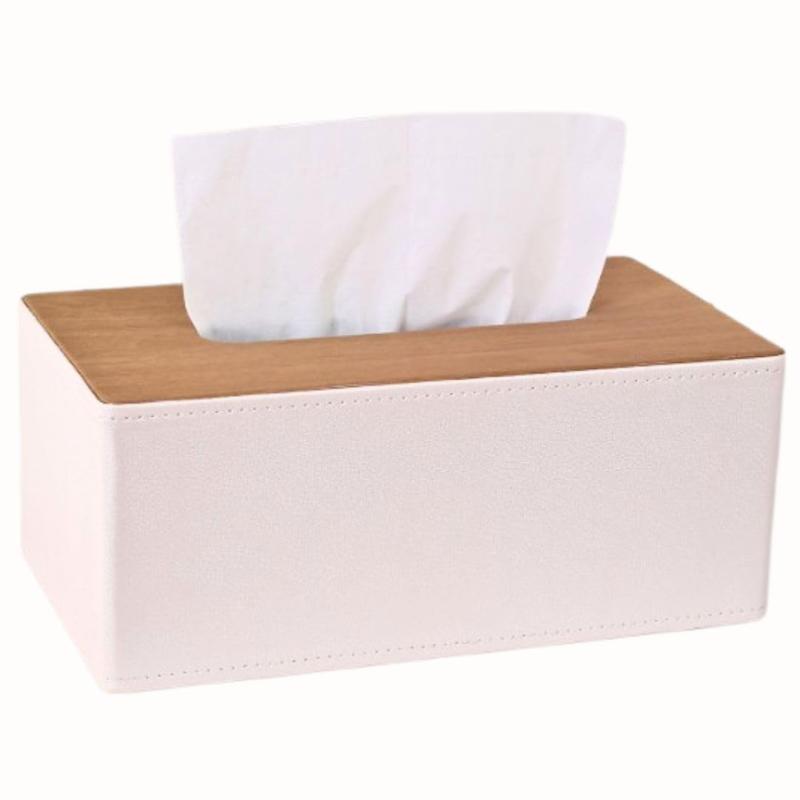 Solvanta ティッシュケース 箱ごと入る レザー調 おしゃれ 北欧風 リビング 卓上用 ホワイト 幅25 x 高さ10.5 x 奥14cm