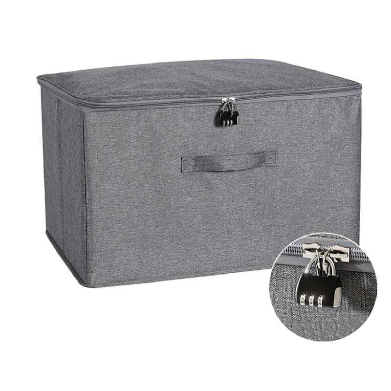 CAWKAY 収納ボックス 鍵付き ダイヤル錠 収納ケース 大容量 折りたたみ 取っ手付き 衣類 収納 ふた付き おしゃれ 布製 ファスナー