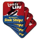 3dRose CST_149445_2 Vintage Loose Lips Might Sink Ships War Poster Soft Coasters, Set of 8