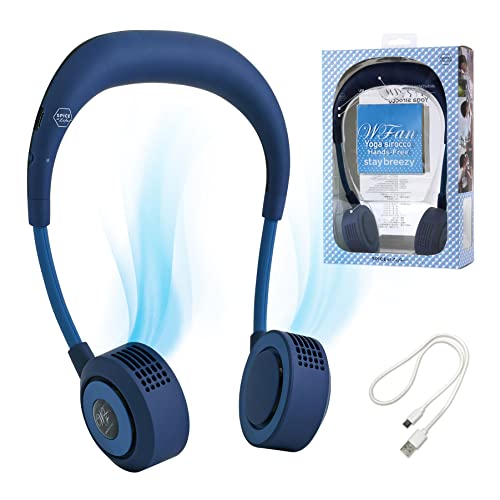 両手が使える ハンズフリー 首掛け扇風機 WFan ダブルファン ヨガシロッコ ネイビー SPICE OF LIFE(スパイス) 静音 5段風量 650分連続使用 首かけ フィット感 ニッケル マスクファン 熱中症対策 リズム風 USB 500回充電