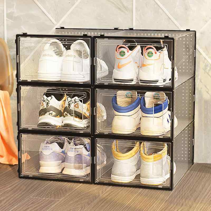 Findbetter シューズボックス 6個セット大容量収納ボックス 磁石開閉扉スニーカーボックス 小物文房具収納ケース 靴ケース 收纳靴箱 男女兼用シューズケース 玄関靴棚 組立て式 透明扉付き 6個セット クリア×ブラック
