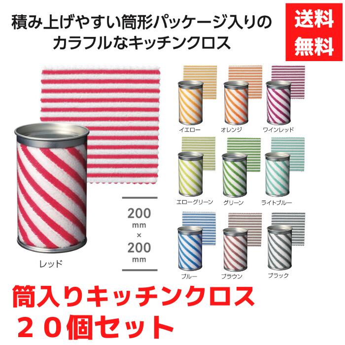 【代引き不可】筒入キッチンクロス 10色アソート 20個セット【送料無料 キッチンクロス ふきん クロス キッチン用品 台所 台所用品 消耗品 日用品 プチギフト 粗品 景品 ノベルティ ギフト プレゼント 来店プレゼント 低額ギフト 低額ノベルティ 総付景品 母の日】