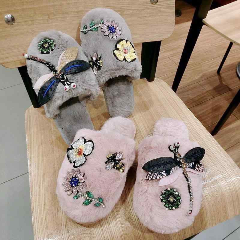 サンダル レディース 花柄 ジルコニア ファー あったか スリッパ 牛筋底 滑り止め ルームシューズ かわいい 普段使い