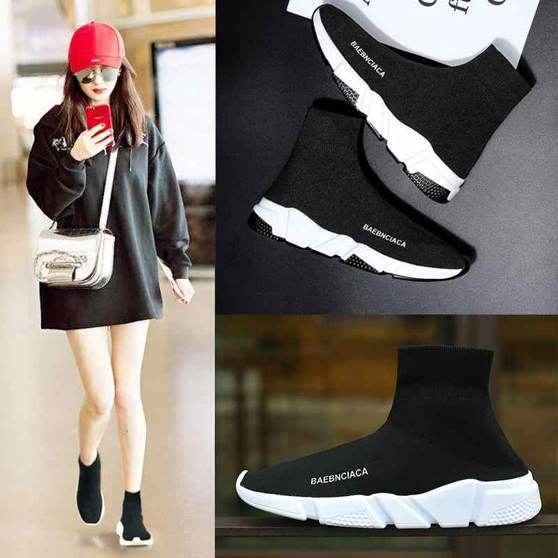 レディース 夏 ニット ハイ カット シューズ ソックス ブーツ 通気性 ストレッチ フライ 大きいサイズ 靴 ハイウエスト パリ ソックス 靴 カップル