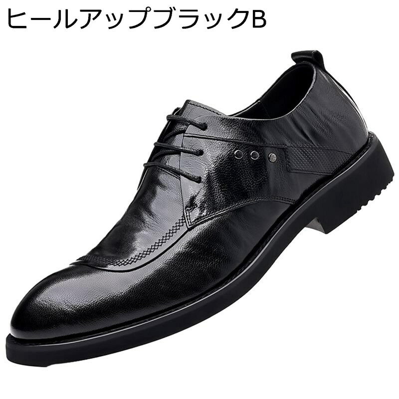 ビジネスシューズ 背が高くなる靴 メンズ 革靴 ポインテッドトゥ レースアップ 本革 ヒールアップ シンプル 軽量 幅広 防滑 履き易い ウォーキングシューズ 春夏秋 彼氏 ビタ男 通勤 結婚式 パーティー