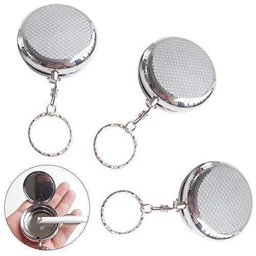 【中古】【未使用・未開封品】Ceqiny ステンレススチール製円形灰皿 ポータブルポケット灰皿 キーホルダー タバコ用スナック付き 車用タバコ灰皿 キーチェーン付き ミニサイズ