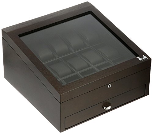 【中古】【未使用・未開封品】Volta ロック可能 腕時計15個 レザー裏地 マット仕上げ シースルートップと収納引き出し付き, ブラウン(Rustic Brown)