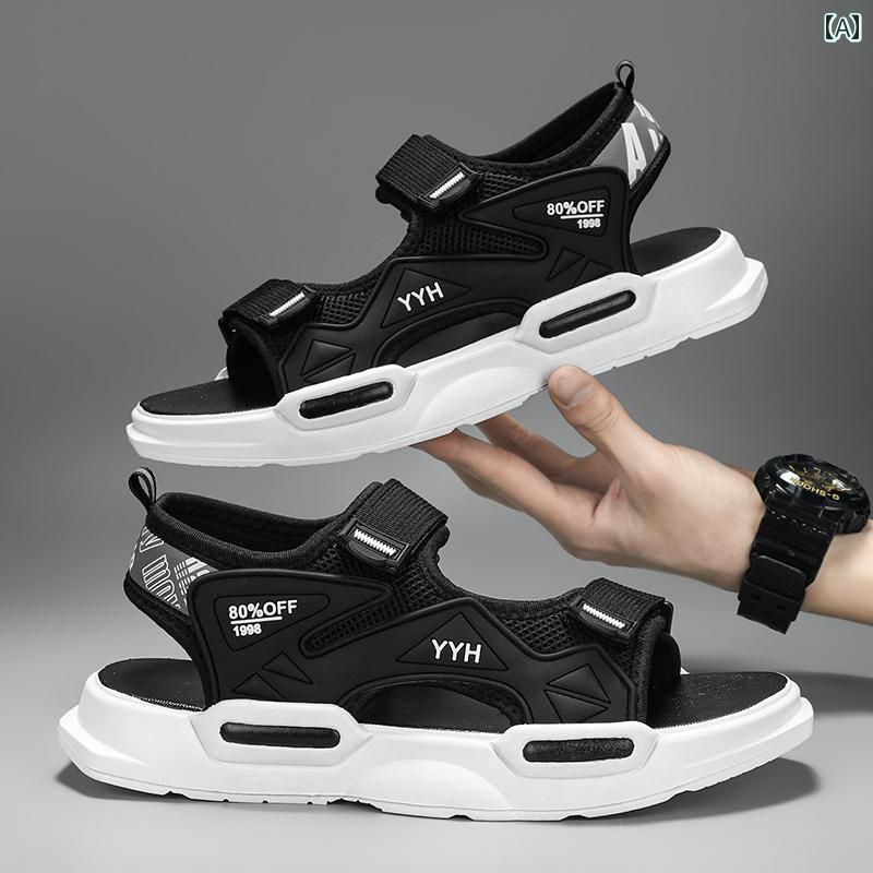 ブラック シューズ 滑り止め ビーチ 夏 カジュアル サンダル メンズ ホワイト グレー ヨーロッパ寸法 アウトドア 通気性