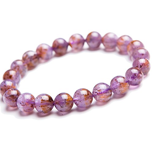 【中古】【未使用・未開封品】9?mmパープルゴールド天然Cacoxeniteルチルクォーツクリスタルラウンドビーズブレスレット