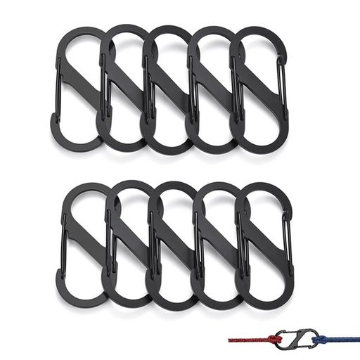 MOCOXYKLXYカラビナS字型超軽量耐久性キーホルダー多機能携帯便利生活雑貨盗難防止紛失防止亜鉛合金アウトドア用品登山キャンプ用品10個セットブラック(60mmx21mm)