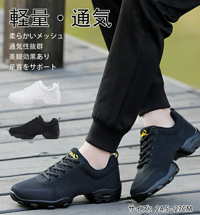 ダンスシューズ 白 黒 ダンススニーカー ヒップホップ ジャズ ダンス スニーカー 厚底 大きい メンズ レディース ムレ対策 ムレにくく スプリットソール 通気 メッシュ スプリット ソール ヒール ソフト 24.5-27cm スニーカー