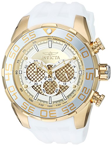 【中古】【未使用・未開封品】Invicta Men's Speedway 50mm White Silicone Band Steel Case Quartz Gold-Tone Dial Analog Watch 26303