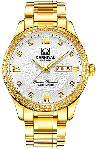 【中古】【未使用・未開封品】メンズ パワーリザーブディスプレイ 自動機械式腕時計 フルステンレススチール 防水 スイス製腕時計 Luxury/gold white