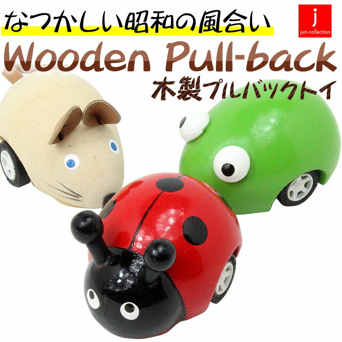 jun-collection(ジュンコレクション) 木のぬくもりを感じる木製プルバックトイ ランニングアニマル 木のおもちゃ/木製トイ/昭和/レトロ/ハンドメイド/クルマ/動物