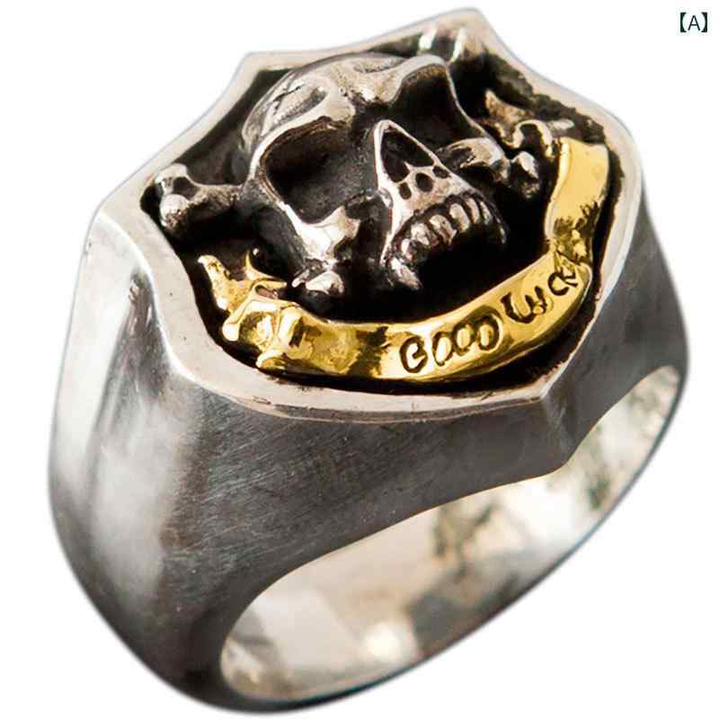 指輪 シルバーリング メンズ シンプル スカルリング ラッキー アクセサリー ワンポイント ファッション 開口部調節可能