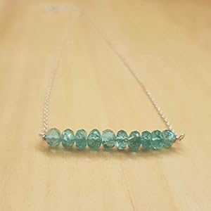 ブルー アパタイト ネックレス ラウンデル ビーズ バー スターリングシルバー チェーン レイヤリング ミニマリスト ジュエリー anushruti Blue Apatite Necklace Roundel Beads Bar with Sterling Silver Chain Layering Minimalist Jewelry
