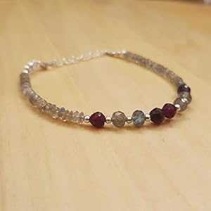ラブラドライト ガーネット ビーズ ブレスレット スターリング シルバー パーツ付き ジェムストーン ジュエリー ミニマリスト ブレスレット anushruti Labradorite Garnet Beads Bracelet with Sterling Silver findings Gemstone Jewelry Minimalist