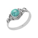 Navya Silver Shop Turquoise Stone Ring, Handmade 925 Sterling Silver Rings for Women Girls, Natural Gemstone Ring US size 6 Solitaire Ring, Round Stone Ring, Minimalist Birthstone Gift Jewelry for her