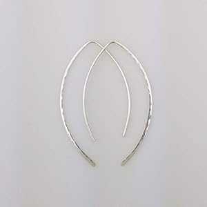 2 インチ スターリング シルバー ハンマード メタル スレッダー イヤリング ミニマリスト ジュエリー - オープン フープ 18 ゲージ Aris Designs Jewelry 2" Sterling Silver Hammered Metal Threader Earrings Minimalist Jewelry - Open Hoo