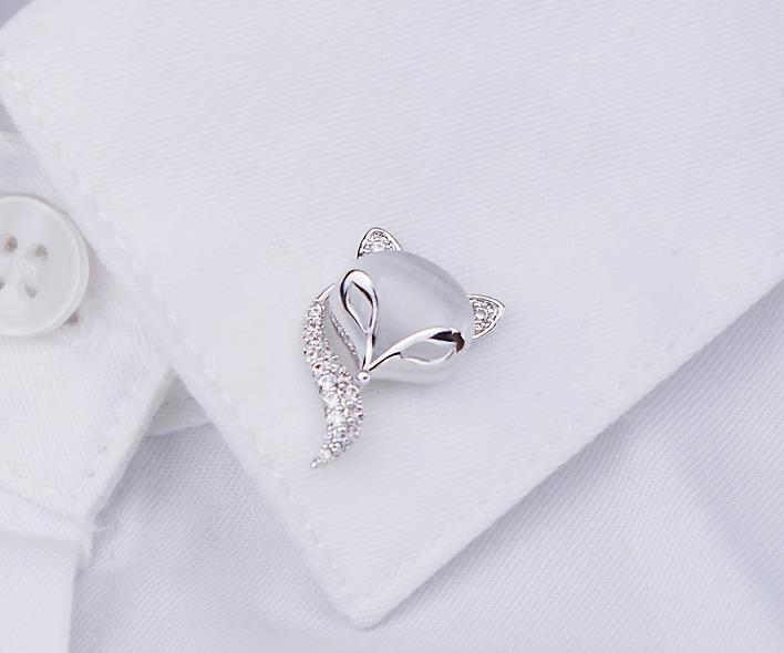 ピン ブローチ おしゃれ レデース メンズ スーツ 装飾 キツネ 動物 エレガント キャッツアイ ストーン 精巧襟ピン ドレス 露出防止 バックル アクセサリー ギフト