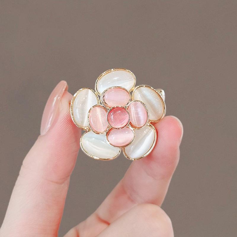 ジャケット ブローチ おしゃれ 入学式 花 キャッツアイ ブローチ スーツ コサージュ 椿 ピン ハイエンド 抗 露出 バックル