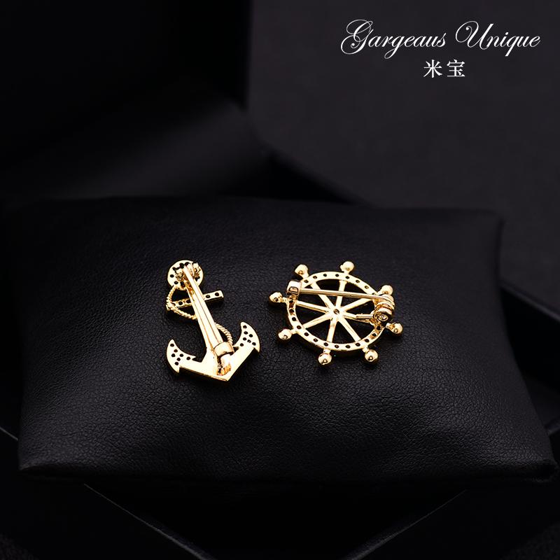 ブローチ おしゃれ ネイビー アンカー 舵 メンズ スーツアクセサリー 小さい ピン 男性 女性 襟 固定 夏 露出防止 セレモニー フォーマル 装飾品