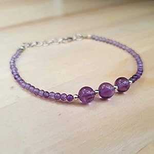 可憐なアメジスト ラウンド ビーズ ブレスレット スターリング シルバー ミニマリスト 2 月の誕生日ジュエリー anushruti Dainty Amethyst Round Beads Bracelet with Sterling Silver Minimalist February Birthday Jewelry