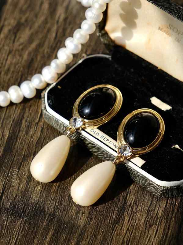 アクセサリー ピアス イヤリング レディース おしゃれ ヴィンテージ風 白黒 パール 上品 エレガント