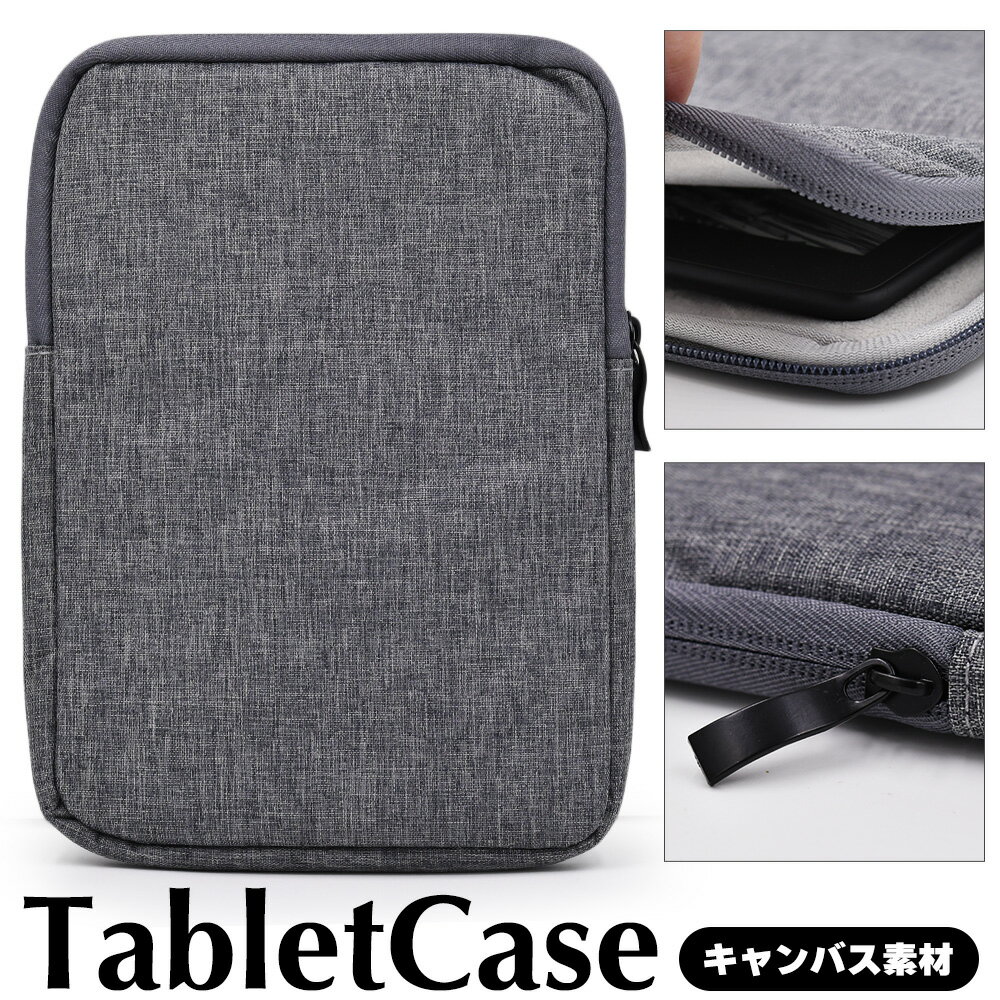 タブレット用 キャンバス スリーブ ケース ipad mini 7 6 5 4 3 2 kobo Kindle FireHD8 液晶保護 グレー 薄型 小物入れ シンプル 灰色 綿 帆布 丈夫 電子機器収納 ポーチ アイパッドミニ