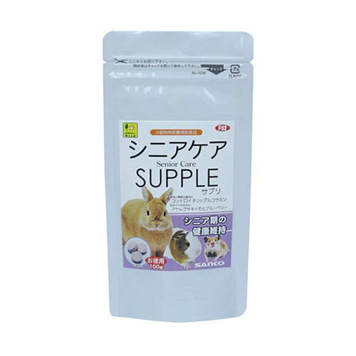 ●小動物の加齢とともに現れてくる体の悩みの対策に!。●小動物達がシニア期をイキイキと過ごすために、毎日摂りたい栄養をバランスよく配合した、タブレット形状のサプリメントです。●シニアケアは、小動物達が加齢を重ねて現れてくる「カラダの気になる」を栄養面からサポート!。●グルコサミンとコンドロイチンの他、アントシアニンや、健康な免疫力を維持し、腸内環境を守る乳酸菌の増殖を補助するオリゴ糖を配合しました。●原材料:澱粉、コーンスターチ、脱脂粉乳、ショ糖、オリゴ糖、アヤムラサキイモ、ブルーベリーパウダー、グルコサミン、コンドロイチン、香料。●保証成分:粗タンパク質/5.6%以上、粗脂肪/0.3%以上、粗繊維/0.1%以下、粗灰分/1.5%以下、水分/3.8%以下。●エネルギー:380kcal/100g●※ペットフードです。●事業者向け商品です。リニューアルに伴い、パッケージ・内容等予告なく変更する場合がございます。予めご了承ください。広告文責:楽天グループ株式会社050-5212-8316